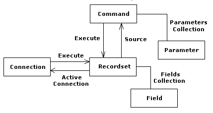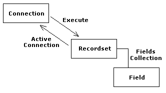 Najczęściej używanymi obiektami w skryptach są: Connection, Recordset i Field. Relacje między nimi są następujące:
